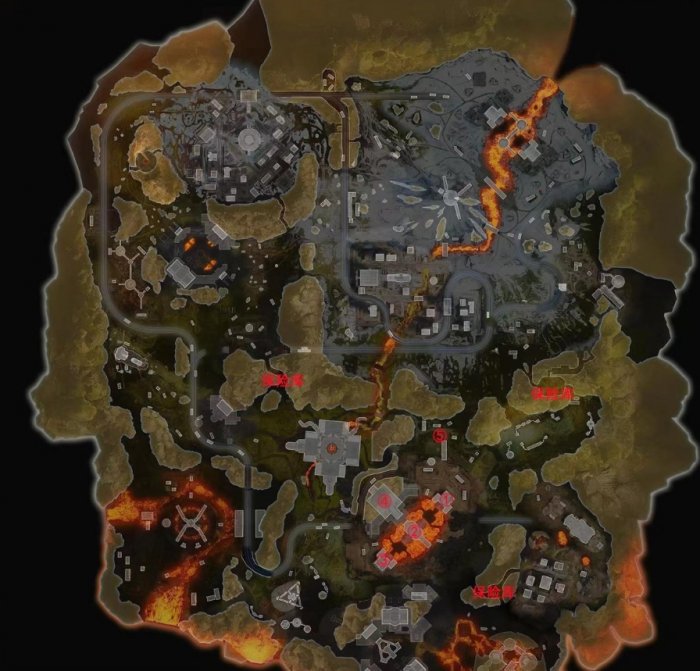 这张图我和我队友选的跳点是熔岩虹吸,这个地方有4块区域,每块区域的间隔也比较大,能很好的分担人流,这个地方哪怕跳的人多了,也很比较难出现3队落在同一个区块的情况,这样落地架就能打的比较舒服。