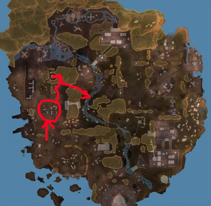 诸王峡谷:野区(径流,空军基地和碉堡之间的那个房区)看图,圈不在这半边地图的搜刮路线也标了。