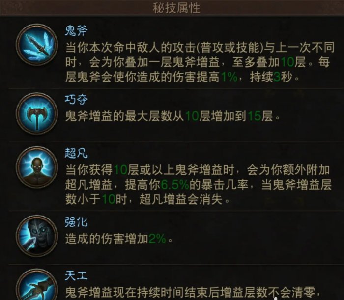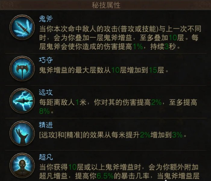 2、三个加暴击的秘技(超凡、精准、激昂)都是减乘类暴击,取最高,不能同时生效,选一个就好。远程一般用超凡,某些场合也可以选精准。