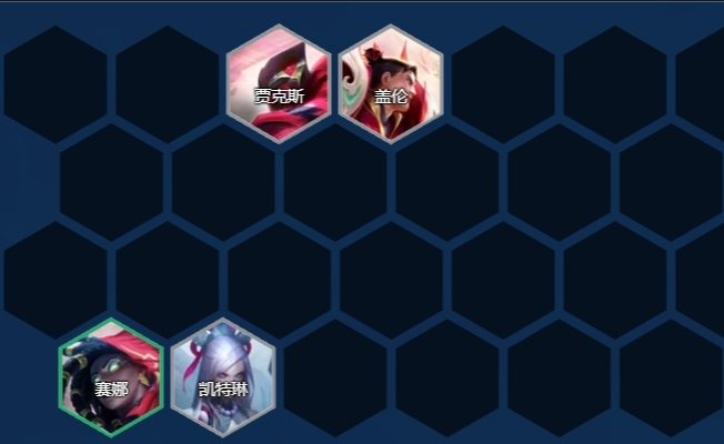 2-1拉4人口,前期可以用2狙神2护卫过渡,肉装给贾克斯或者盖伦,谁两星优先给谁,输出装给赛娜打工。