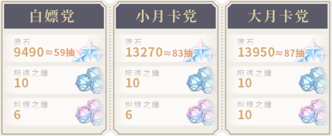 注:购买月卡的300结晶不计入,有需要可自行转化