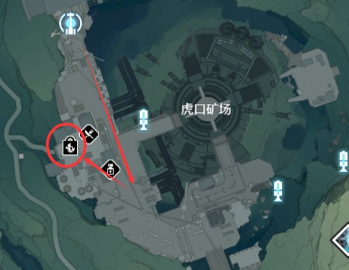npc的位置在虎口矿场,可以沿着箭头方向找到该商人npc。