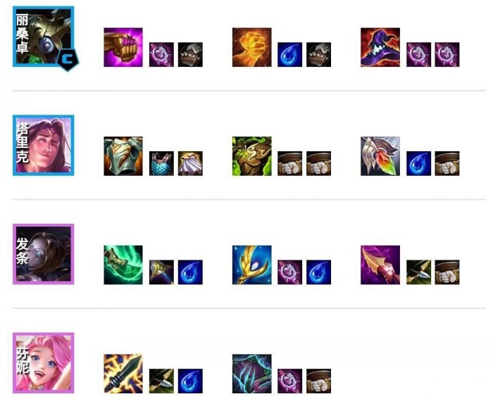 石像鬼板甲提升双抗加成,收益比较高。狂徒铠甲增加最大生命值,搭配石像鬼大幅提升坦度。救赎提供减伤和回复效果,也能给丽桑卓提供减伤和治疗。