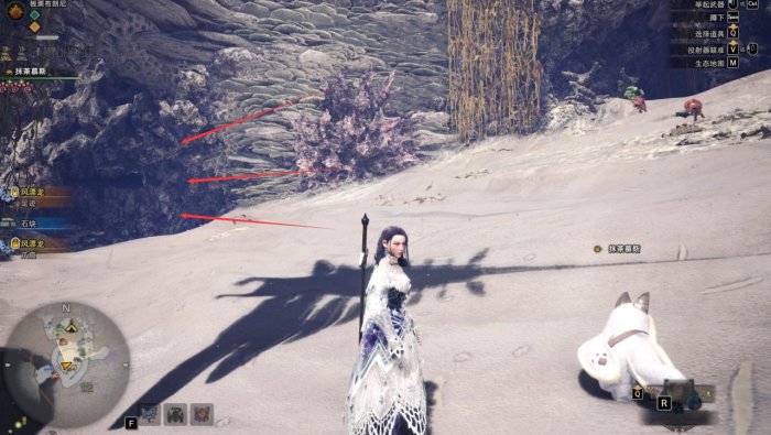 这里可以看到很长的一条藤蔓,红框处有一只楔虫,按下瞄准键,会有按键提示,按下鼠标右键可以发射钩爪拉上去,化身新大陆蜘蛛侠。