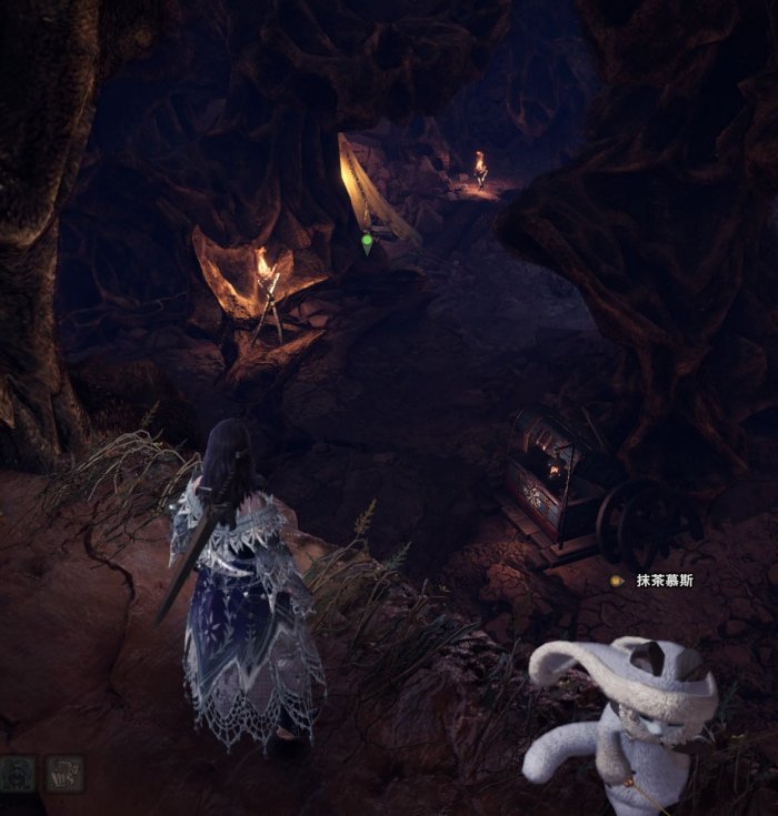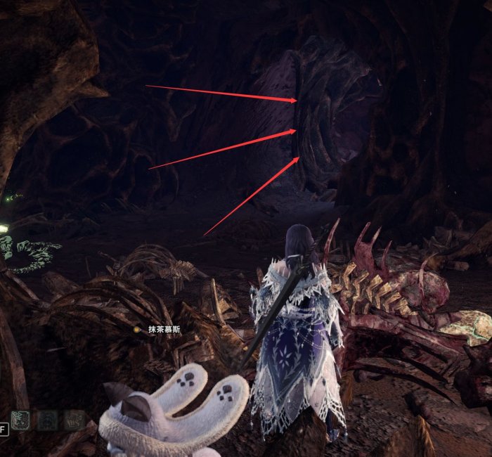 这里展示更近的东营地出发。首先东营地出来,以骨冢为参照物,左手边的藤蔓,爬上去,钻过洞穴。