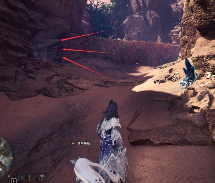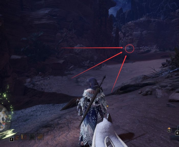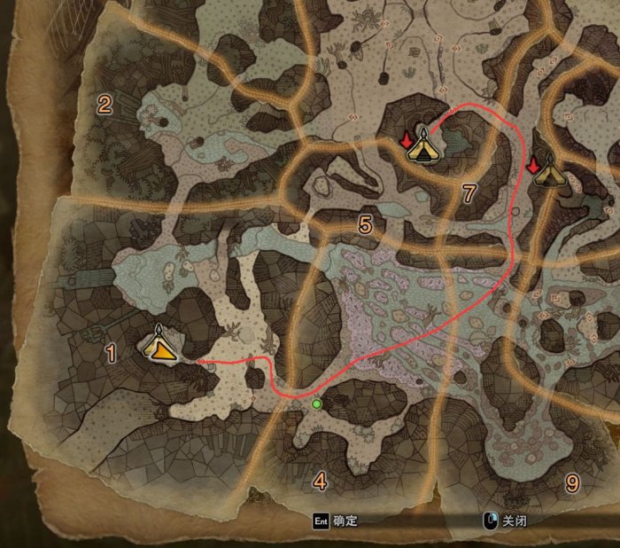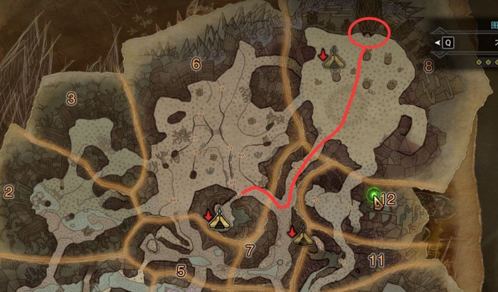 从中央营地门口出发,一直到主线打土砂龙的地方,到达红圈位置,这个地图上的这个地方有个小缺口。