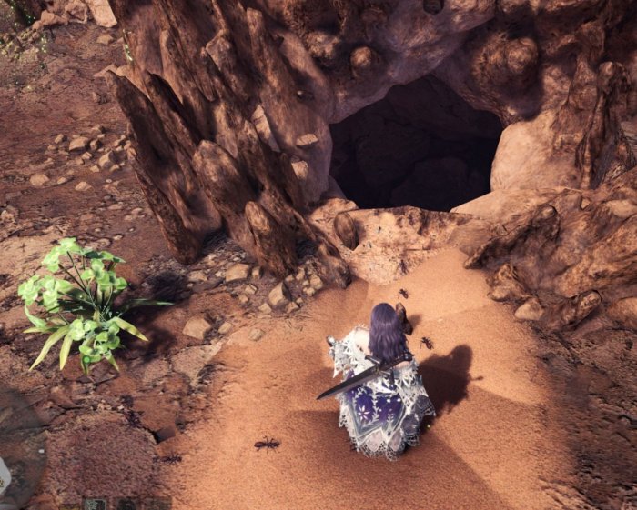在这个洞口附近的参照物是一株草药和蚂蚁,直接跳下去。