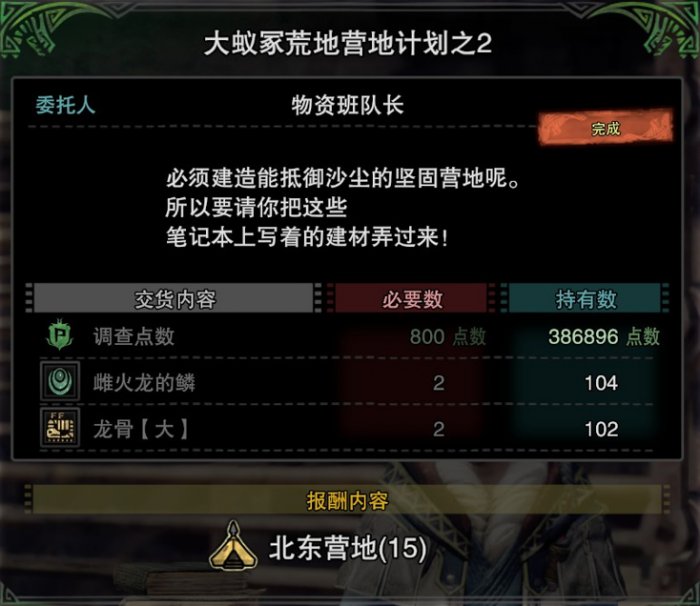 荒地-北东营地解锁素材。