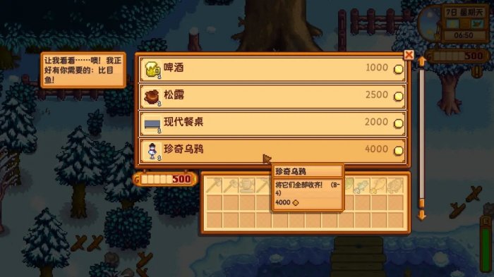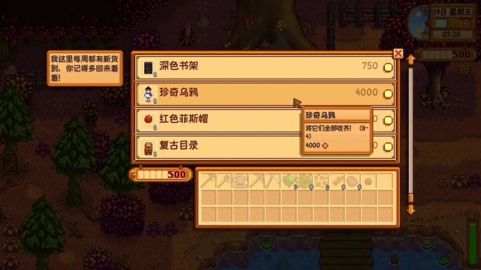 ②在秋季或冬季的猪车商店中会有40%的概率出现,花4000金币购买