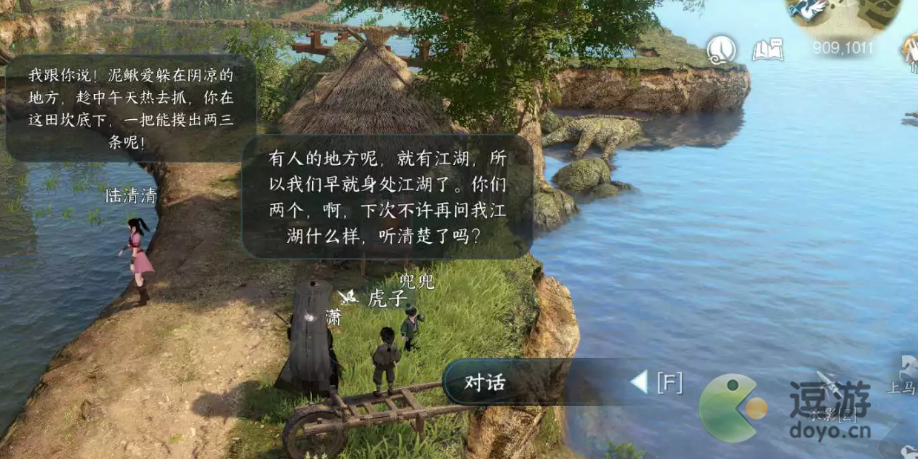 2、到桃溪村909.1011处与“虎子”对话接取任务