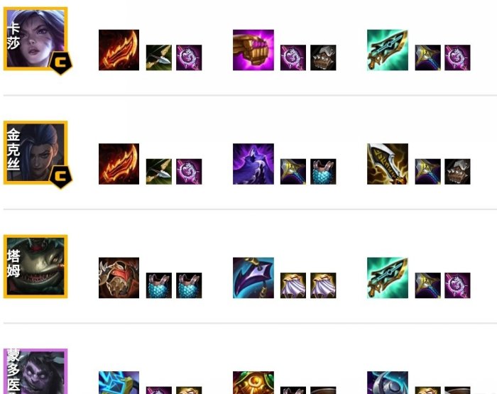 棘刺背心对抗物理输出,减免普攻伤害。巨龙之牙对抗法系输出,并获得回血能力。科技枪给自己和友军回血,塔姆技能伤害高,带科技枪收益高。