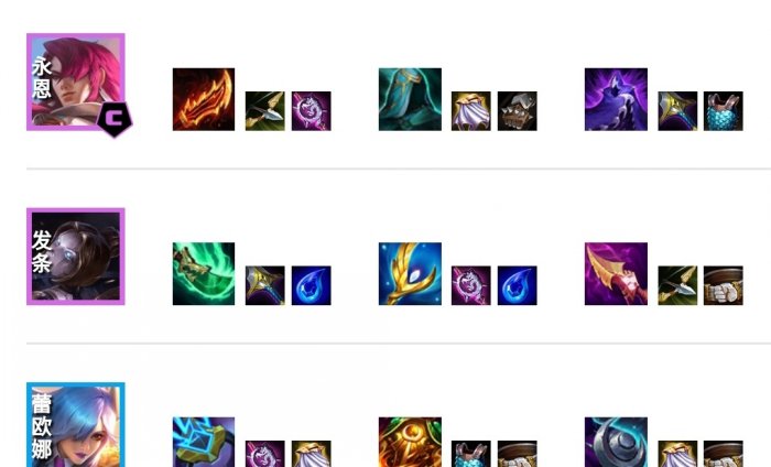 蕾欧娜带功能性装备,离子火花减敌方魔抗,提升奥利安娜的伤害。日炎斗篷给对方挂上重伤效果,降低回复。薄暮法袍减少敌方护甲,提升永恩的输出。