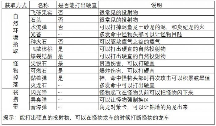 前面在钩爪篇讲过,在怪物没有发怒的时候钩爪上头全弹发射可以撞墙,撞墙用到的投射物只能是自然获取和怪物掉落的,道具袋携带的三个投射物不能作为撞墙的弹药,还不能作为铳枪起爆龙杭和虫棍猎虫强化的素材。