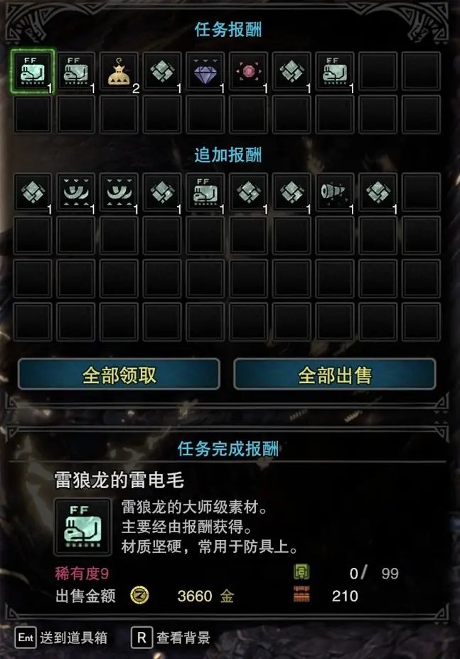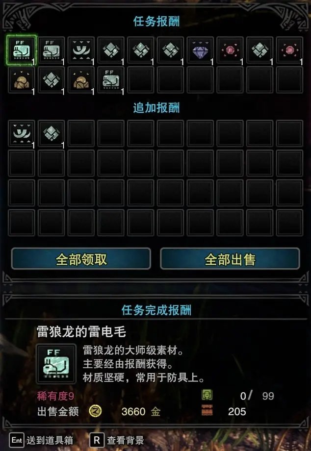 首先讲一下捕获和普通击杀的区别,捕获获得的追加奖励会多一些,所以如果是为了刷素材,大家最好还是选择捕获怪物。以踢地跨月为素材。