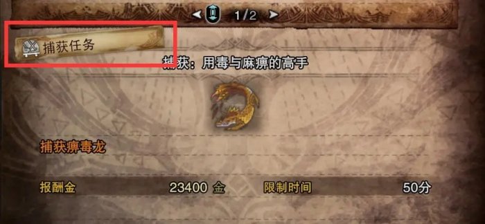 任务分为三种,狩猎任务、捕获任务和讨伐任务。狩猎任务中的怪物是可以击杀,也可以捕获的,不影响任务完成,但是捕获任务只能捕获,不能击杀。讨伐任务都是古龙之类(萌宝:?)无法捕获的怪物。记住,古龙无法捕获也不吃陷阱,落穴陷阱和麻痹陷阱都不吃。