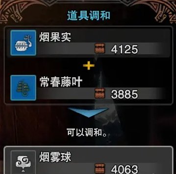 携带道具上,不同于常规怪物的一个道具就是烟雾球,调和材料是烟果实和常春藤叶,其次没有什么好说的。