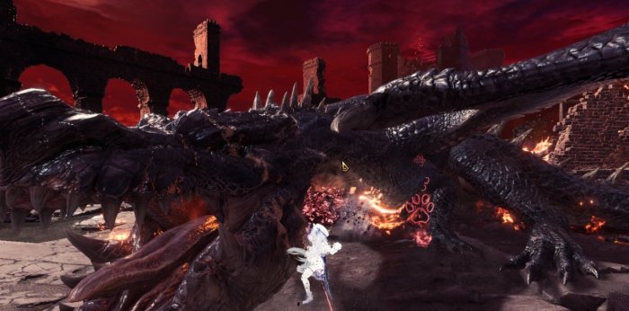 进行过战前准备后,我们来聊聊黑龙。作为冰原最后一次更新的怪物,身为禁忌的米拉小姐有着专属的战斗场地——虚黑城,同时拥有本作最复杂的战斗机制,最华丽的动画演出等。