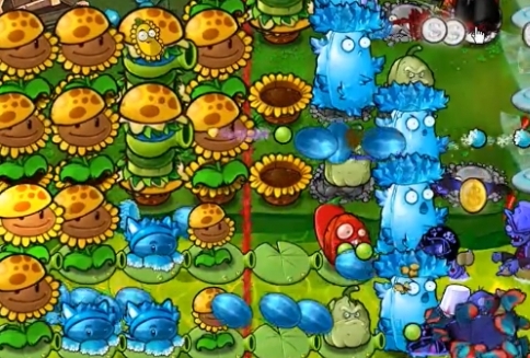 4.最后在红线右侧种植多个寒冰豌豆坚果就能够过关了。