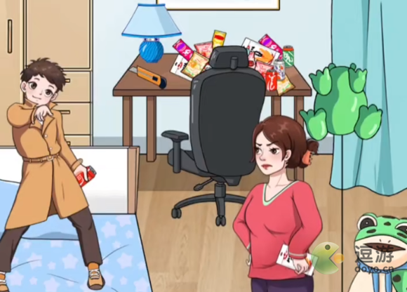 13、点击桌上的台灯,台灯打开,点击露出的零食影子