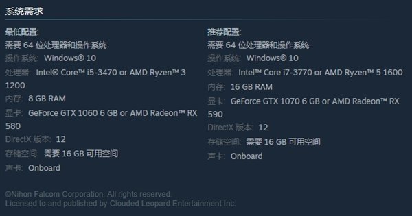 显卡:GeForce GTX 1070 6 GB or AMD Radeon™ RX 590