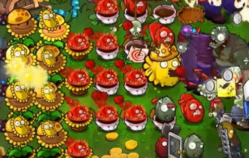 4、然后在左侧第三列种植四个川菜投手进行输出,在右上方种植多个坚果模仿者。
