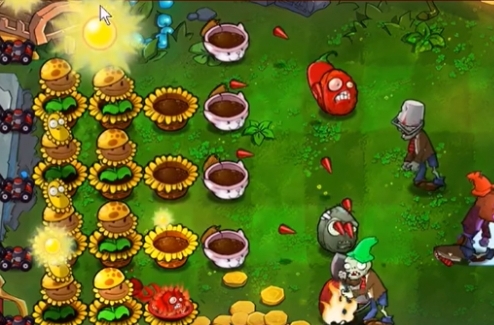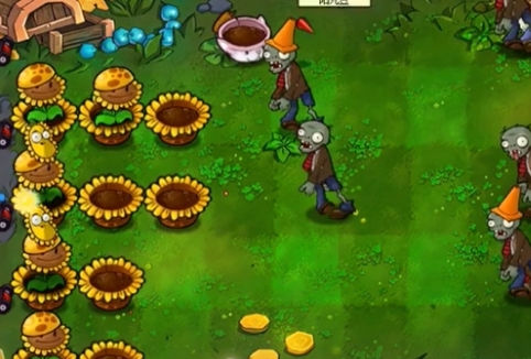 5、最后在猫砂盆上种植三列川菜投手就可以轻松击败僵尸了。