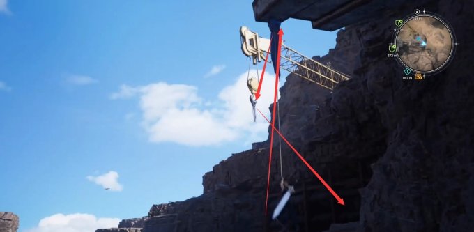 2号召唤兽水晶,需要从下图位置用抓钩和攀爬才能过去。