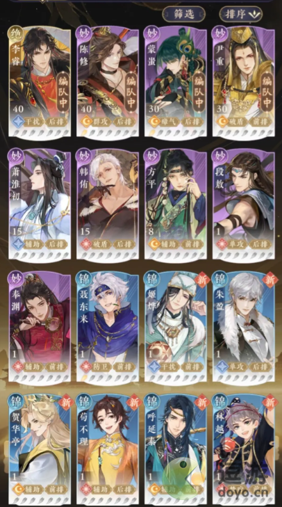 前排-青魂(强力单体伤害,生命值较低)、顾昭(有坦度有输出)、孙怀瑾(生命链接,共同承伤,技能为队友提升暴伤),后排-陈齐(强力群攻输出)、陆鸣(最强奶妈)、拓跋煜(引爆瘴气效果)、吴亥(超强输出,技能必暴击)