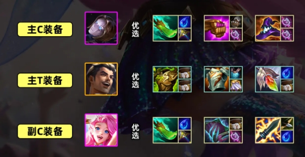 出装顺序为:青龙刀>法爆>狂徒>板甲>大帽子。前期优先制作奥莉安娜的装备,其次是前排肉装。后期多余的法强装可给萨勒芬妮,多余肉装给塔里克。
