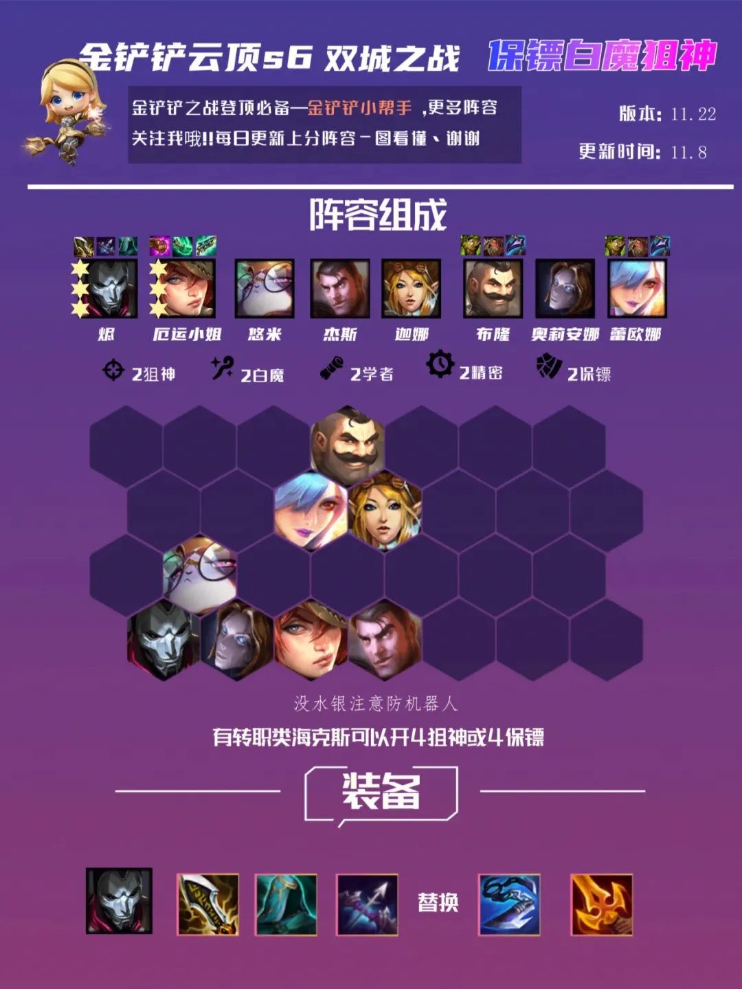 金铲铲之战S6赛季【双城传说】已经拉开帷幕,对于渴望在新赛季中取得佳绩的玩家们来说,选择一套合适的阵容至关重要。今天,我将为大家介绍一套备受瞩目的热门上分阵容——「狙神白魔」。