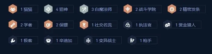 4狙神、3白魔法师、1社交名流、2精密发条、2战斗学院、2学者、2保镖