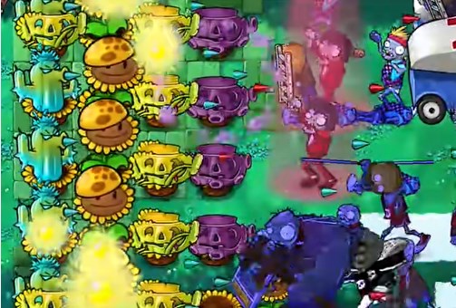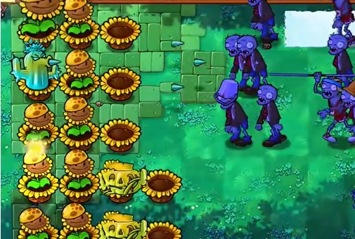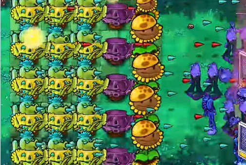 5、最后将左侧三列的阳光向日葵全部铲除,补充三列寒冰仙人掌和仙人掌南瓜头即可。