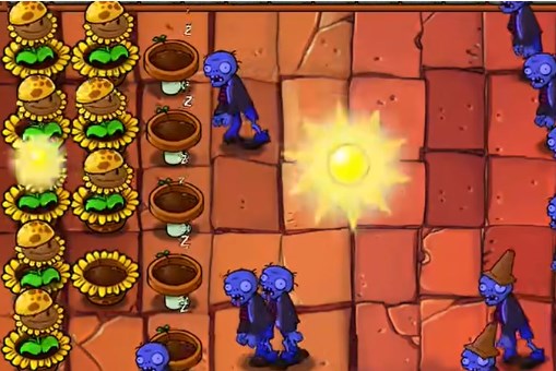 2、先在左侧种植两列向日葵花盆和阳光向日葵。