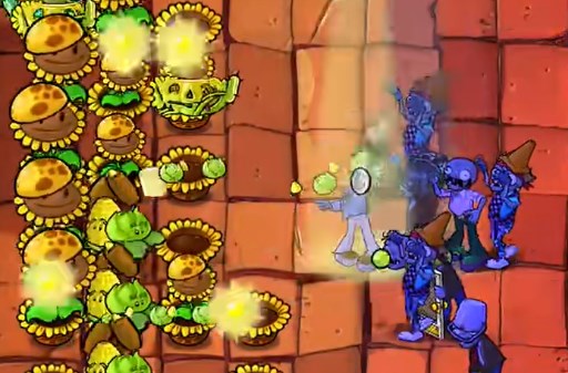 4、然后将左侧的第一列的向日葵都铲除,继续补充第二列的玉米卷香蒲。