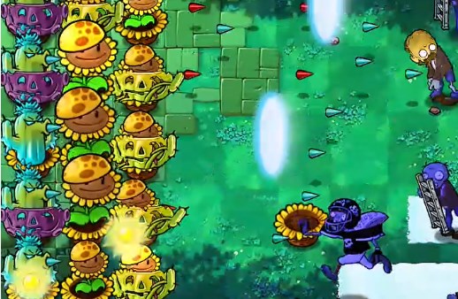 4、将左侧第一列的向日葵铲除,再补充一列寒冰仙人掌。
