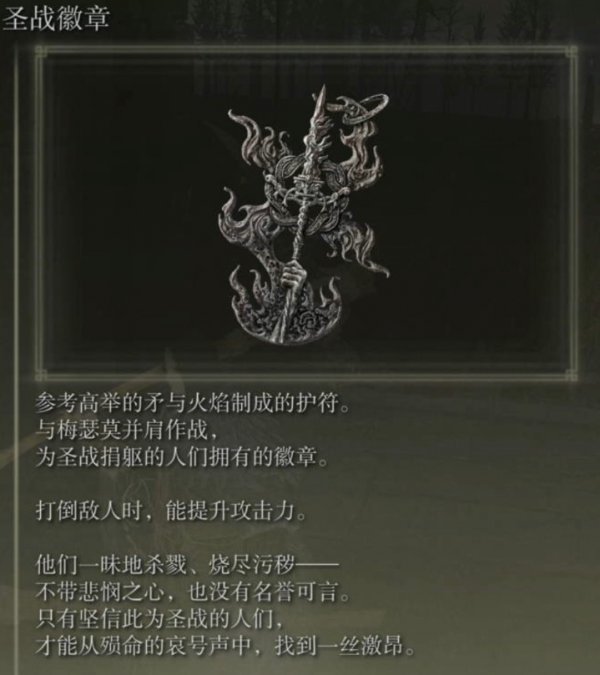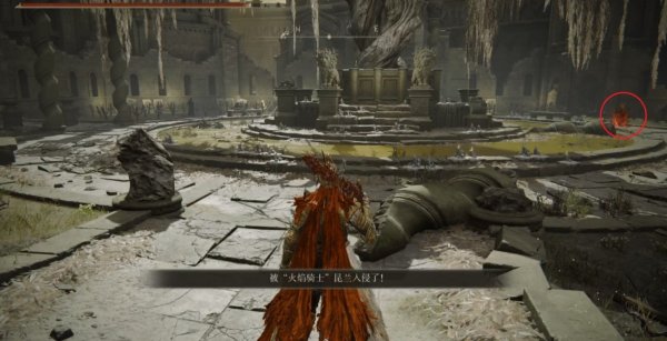 2、走到右侧尽头的广场,此处会刷出一个红灵【火焰骑士昆兰】,将其击败获得护符【圣战徽章】。