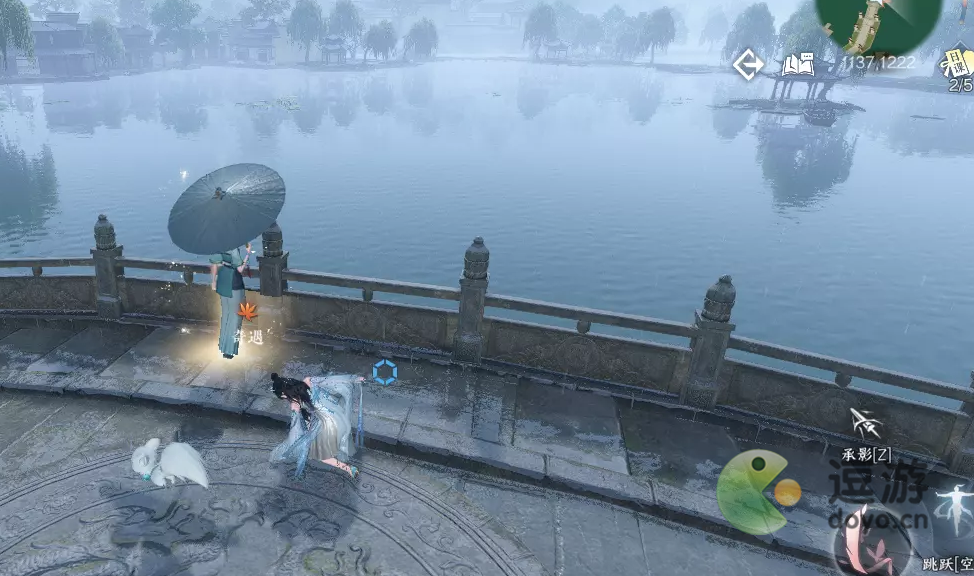 3、根据对话前往桃花坞将伞还给青儿(需要在相思门地图卡过去),然后再桃花坞527.442进入剧情,在坐标位置附近随便走走触发剧情,然后与船夫聊天,聊天结束后即可完成奇遇。