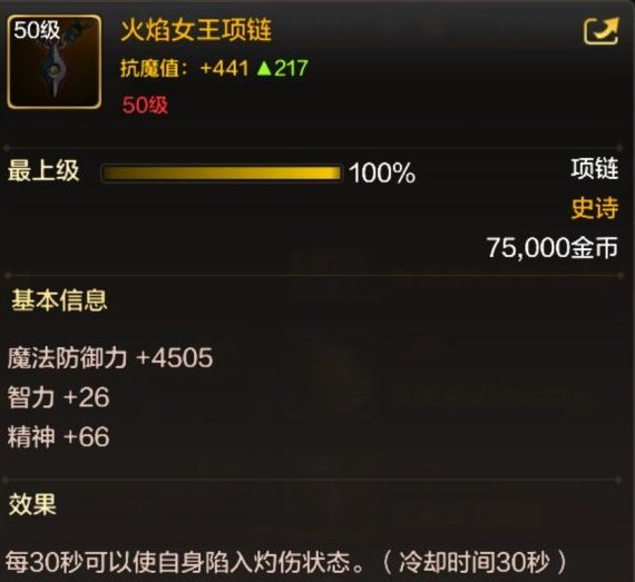 由于骨戒的存在,所以首饰选择散搭而不是套装。在项链和手镯上可以选择史诗项链火焰女王的项链和正义守护手镯,两者分别拥有10%和5%的伤害增加,是无特殊情况下单个部位中增加伤害最多的散件。