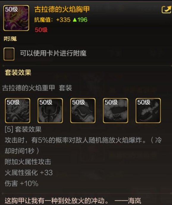有一些狂战士的玩家在防具上会选择史诗防具的散搭。这里不推荐使用散搭,建议条件允许的话只考虑“火甲套”古拉德的火焰套。