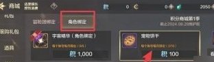 3、最后在积分商城内,点击右侧的角色绑定,选择宠物饼干,消耗100积分即可兑换;