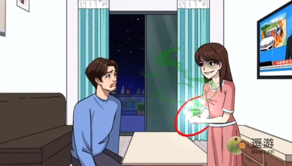 5、最后在家里,点击女儿手中的茶、女儿的表情、伤心的爸爸、电视新闻