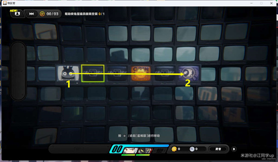 2.接着会进入下图的模式,相当于副本,首先从1区域移动到2区域