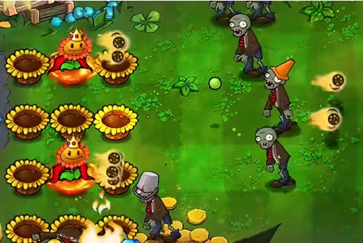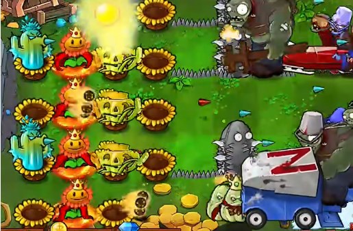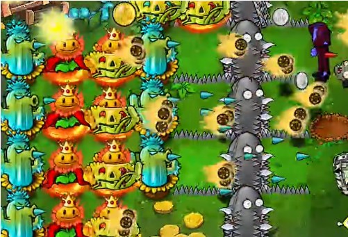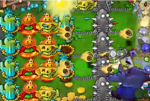 4、然后补充左侧的向日葵女王,再补充里侧的寒冰仙人掌。