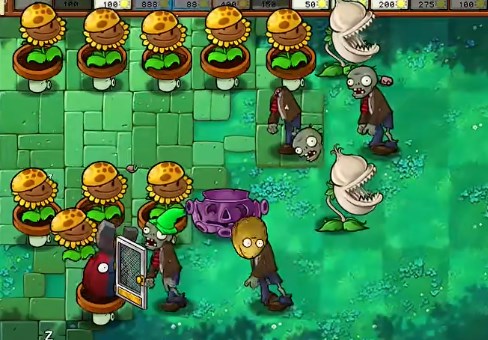 3、在五路种植多个阳光向日葵,在右侧种植多个大蒜花。