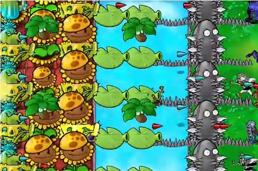 5、最后将左侧的阳光向日葵铲除,补充一列寒冰仙人掌即可过关。
