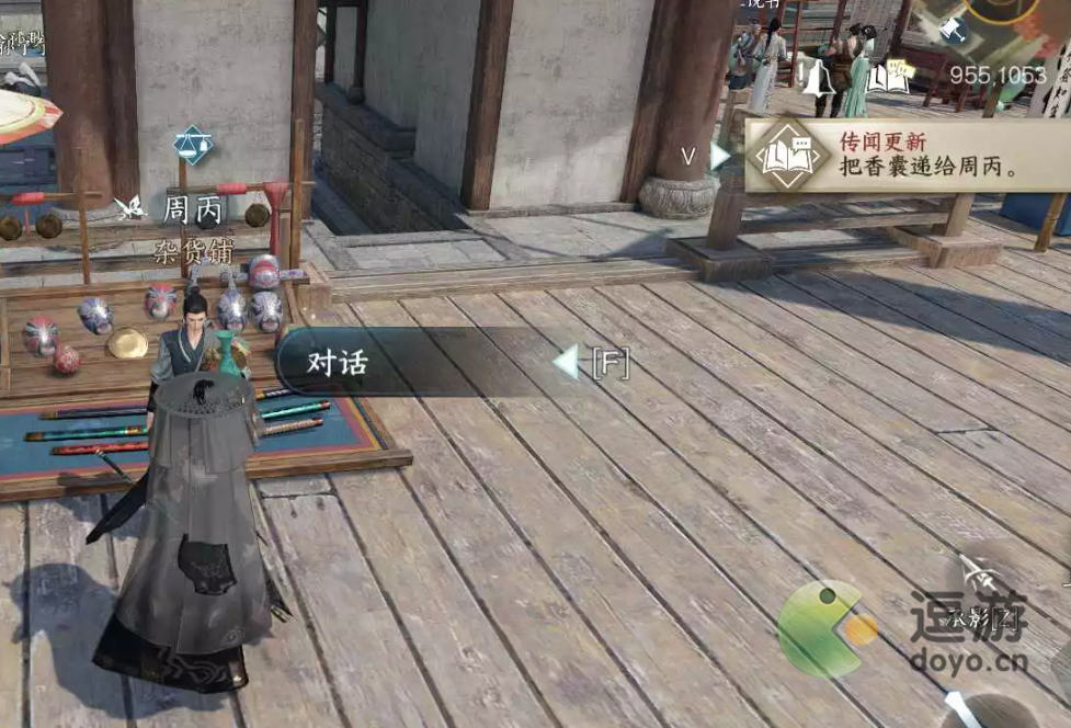 2、然后到汴京955.1053处向NPC“周丙”提交“香囊”即可完成任务