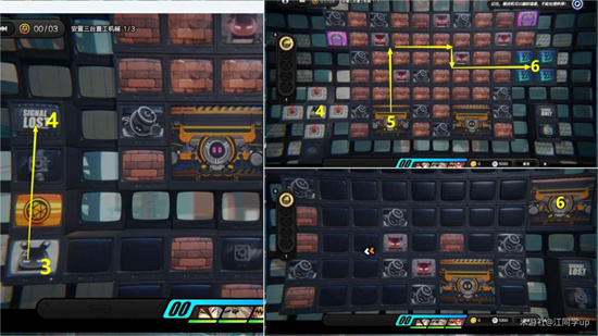 3.接着去4区域,4区域上下左右4个控制机关,可以控制5机械移动,将5机械按照下图路线,移动到6区域即可
