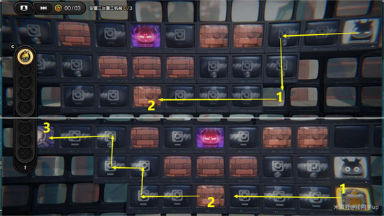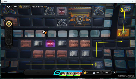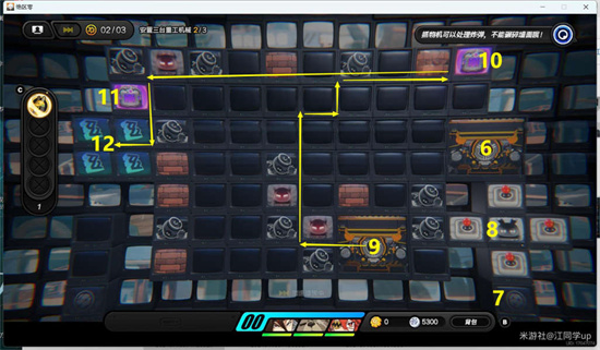 6、八区域上下左右4个控制机关,可以控制9机械移动,将9机械按照下图路线,依次拿了10和11区域的奖励后,进入12区域即可