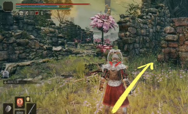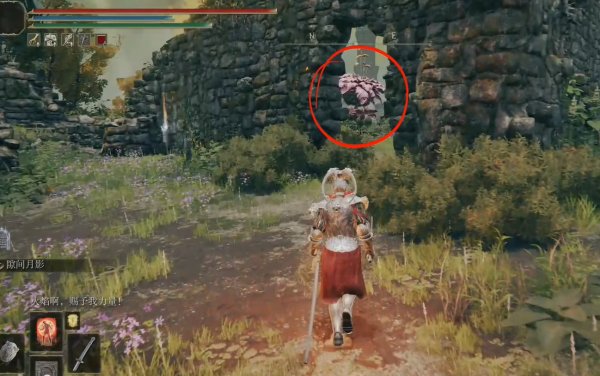 3、来到目标地点,向废墟里的大花位置走,抵达“驿站街遗迹”