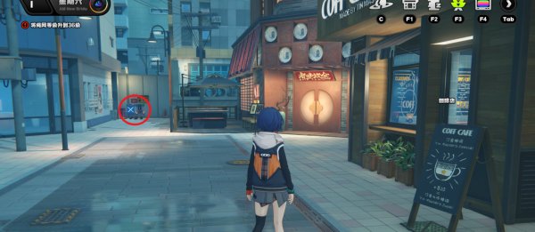 传送到咖啡店,向左看,在街角可以看到1个小卡格车